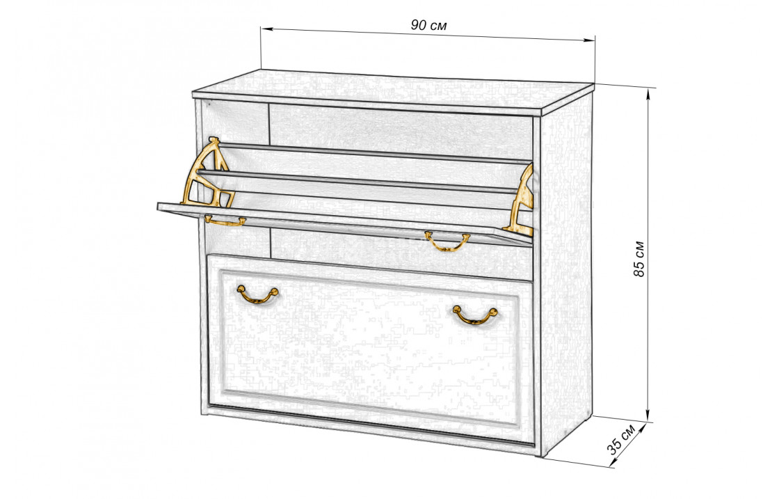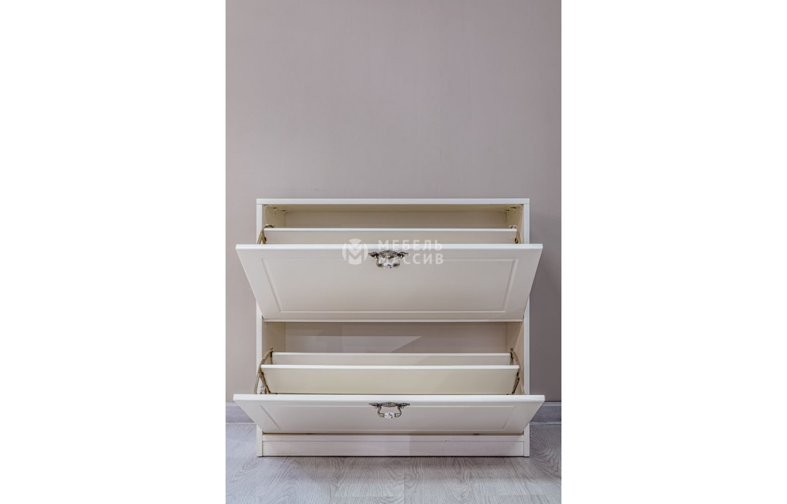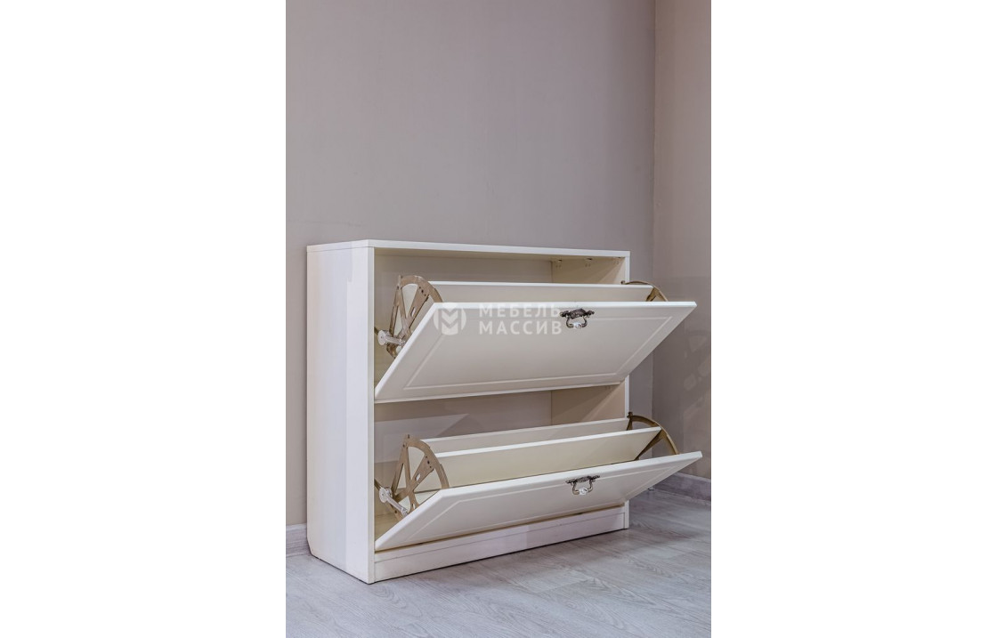 Обувница Фея (белая эмаль) с двумя отсеками для хранения обуви изготовлена из натурального древесного массива. модель отличается долговечной конструкцией с надёжным механизмом откидывания и лаконичным дизайном. изделие, которое можно купить в нашем интернет-магазине по лучшей цене, покрыто защитным лаком.