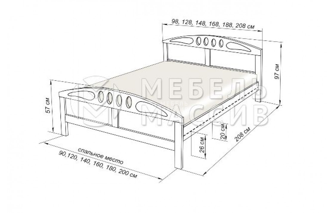Прочная кровать Галатея (из дуба) изготовлена из экологически чистого массива. Изделие имеет закруглённые спинки с овальными прорезями. Изножье и изголовье модели также украшены оригинальной симметричной резьбой. Купить эту дубовую кровать по специальной цене можно в нашем интернет-магазине. Осуществляется доставка на дом по Симферополю и Республике Крым.| Размер | Цена | |