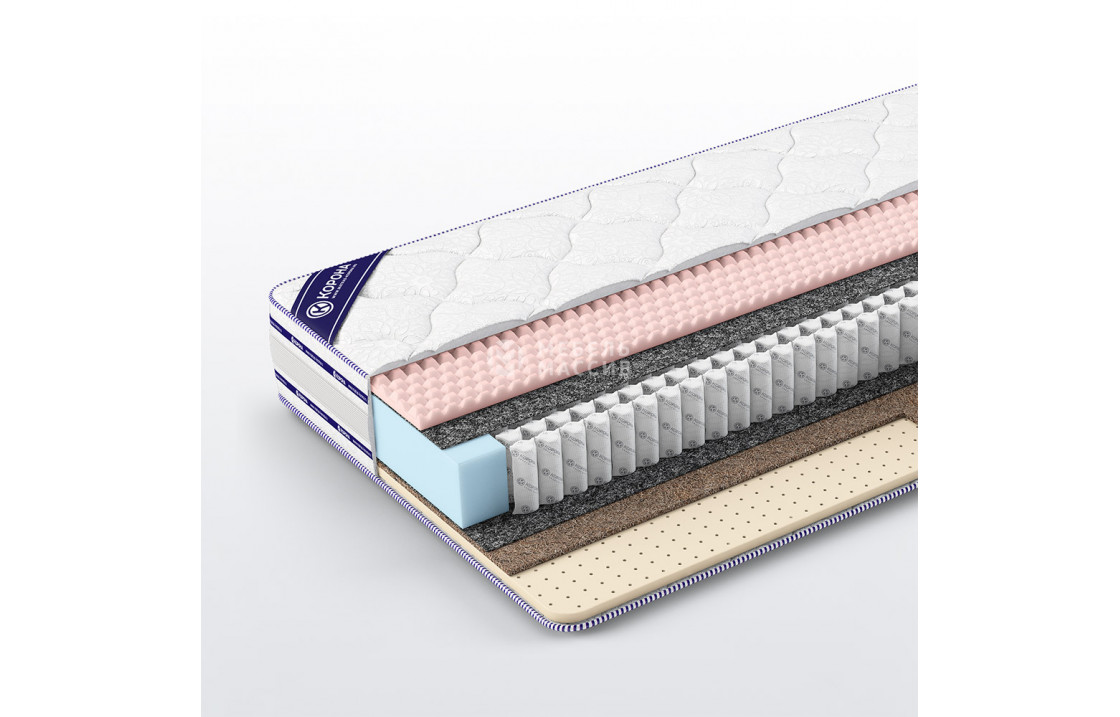 7. Кокосовая койра 10 мм ? Кокос - переплетенные волокна кокосового ореха, растительного происхождения. Исключительные свойства кокоса в прочности, упругости и гигиеничности. Материал придает жесткости матрасу. Обладает отличной вентилируемостью, устойчив к любой влажности и перепадам температуры, гипоаллергенный и долговечный.