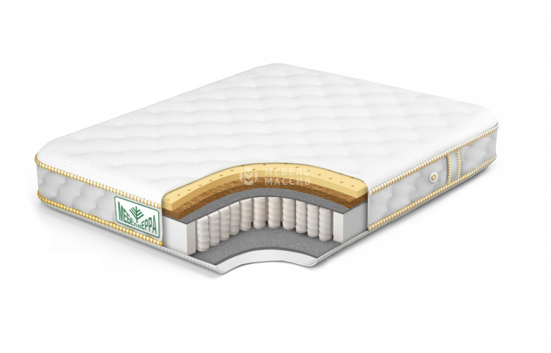 Кокос - переплетенные волокна кокосового ореха, растительного происхождения. Исключительные свойства кокоса в прочности, упругости и гигиеничности. Материал придает жесткости матрасу. Обладает отличной вентилируемостью, устойчив к любой влажности и перепадам температуры, гипоаллергенный и долговечный.